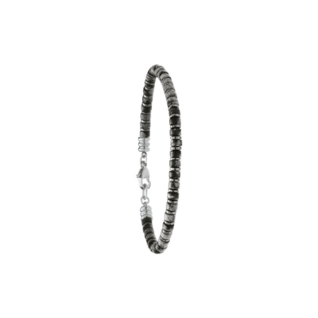 Bracelet Jourdan Bijoux Halo en acier, hématite et obsidienne neigeuse