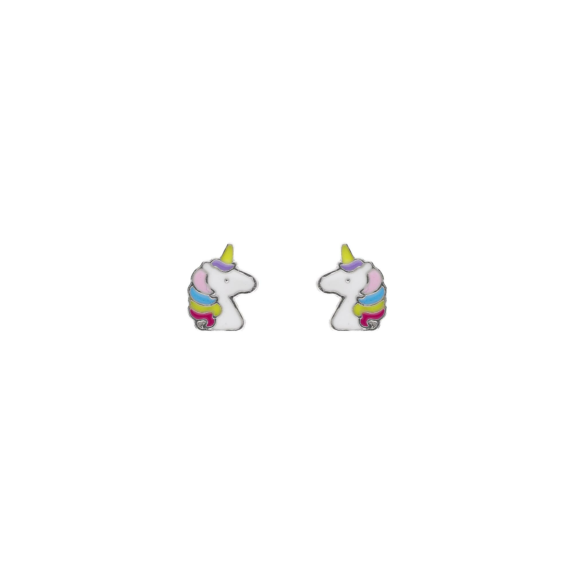 Boucles d'oreilles tige argent rhodié tête licorne multicolore